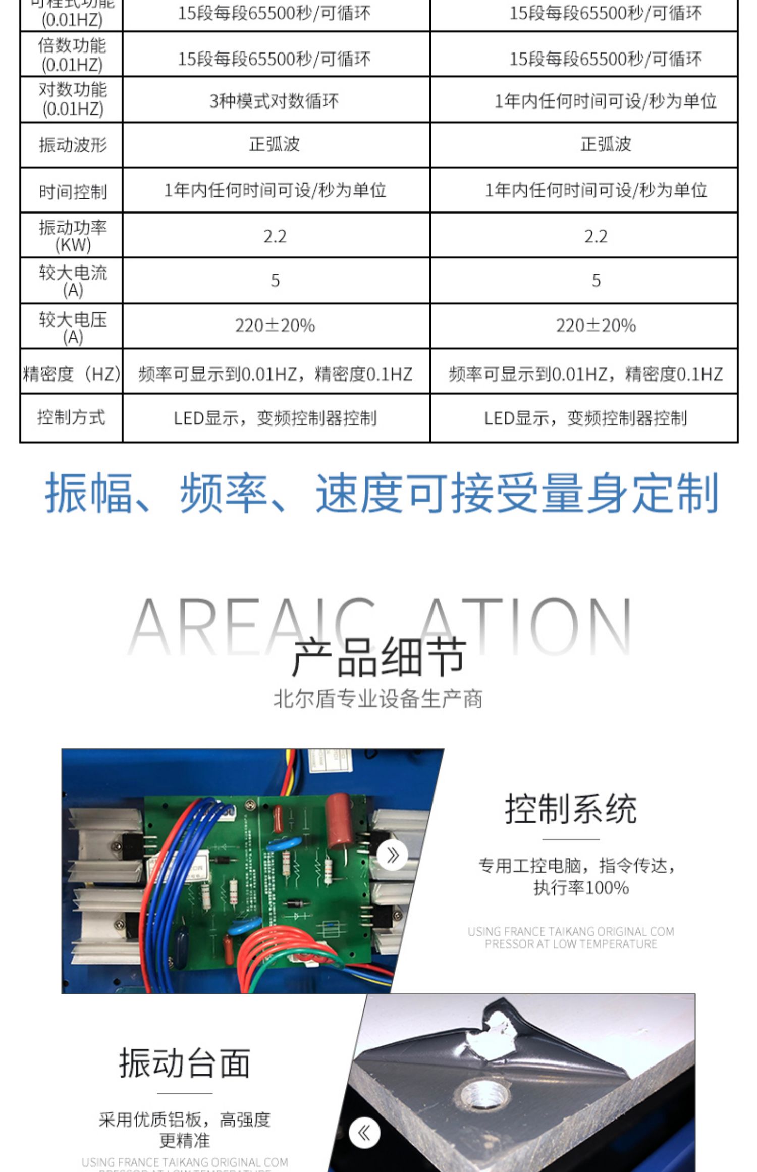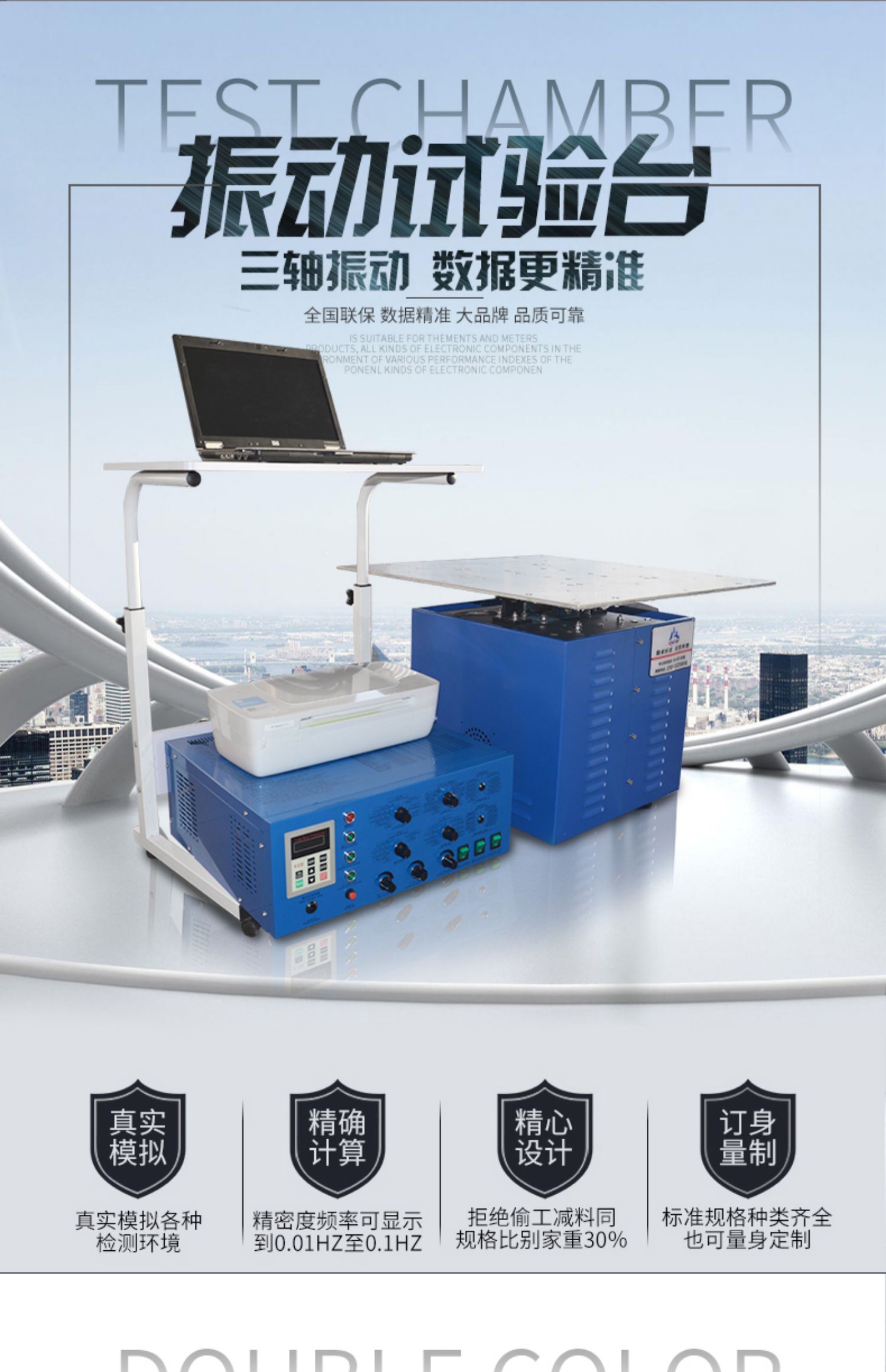 適用于國防、航空、航天、通訊、電子、汽車、家電、等行業。該類型設備用于發現早期故障,模擬實際工況考核和結構強度試驗,產品應用范圍廣泛、適用面寬、試驗效果顯著、可靠。正弦波、調頻、掃頻、可程式、倍頻、對數、最大加速度調幅時間控制全功能電腦控